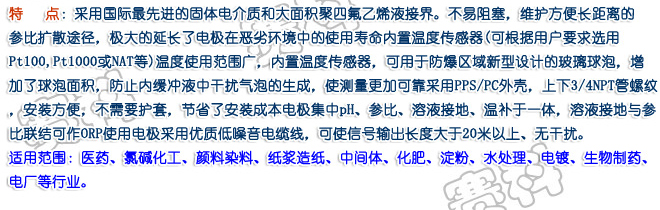 工業(yè)復合純水PH電極 PH8022-S型點擊次數: