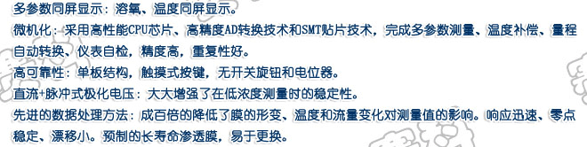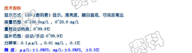 產(chǎn)品概述: 產(chǎn)品描述:測(cè)量范圍:0~100.0ug/L , 0 ~ 20.0 mg/L 量程自動(dòng)轉(zhuǎn)換;0~99.9℃;分辨率:0.1μg/L 、0.01 mg/L , 0.1℃; 精 度:μg/L:±1.0%FS; mg/L:±0.5%FS,±0.3℃;可廣泛應(yīng)用于火電、化工