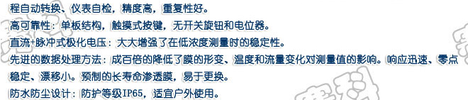 產(chǎn)品概述:產(chǎn)品描述:OXY5403B 這是一款全新的溶解氧分析儀,采用了一系列先進(jìn)的分析技術(shù),確保了在(超)低濃度的穩(wěn)定性和準(zhǔn)確性,在測(cè)量性能和使用環(huán)境等方面有很大的提高,中文顯示、中文菜單式操作、功能強(qiáng)大的等特點(diǎn)??蓮V泛應(yīng)用于火電、化工化肥、冶金、環(huán)保、制藥、生化、食品和自來(lái)水...
